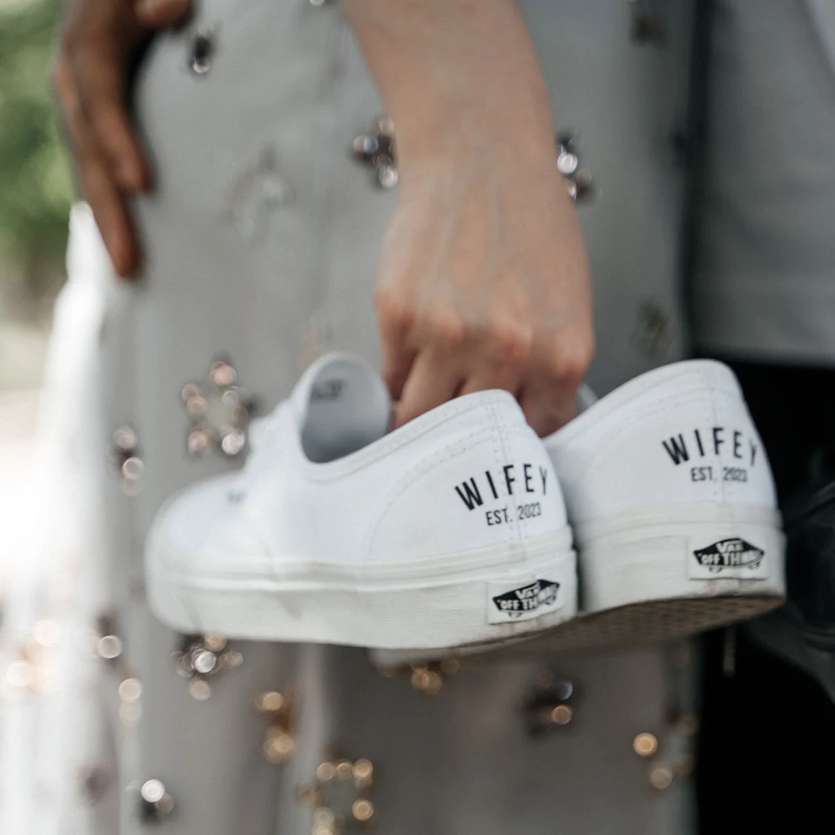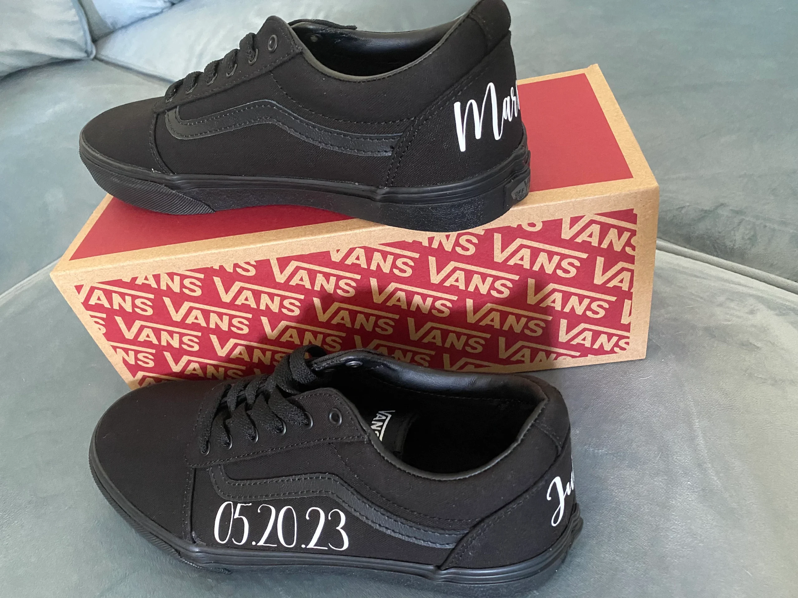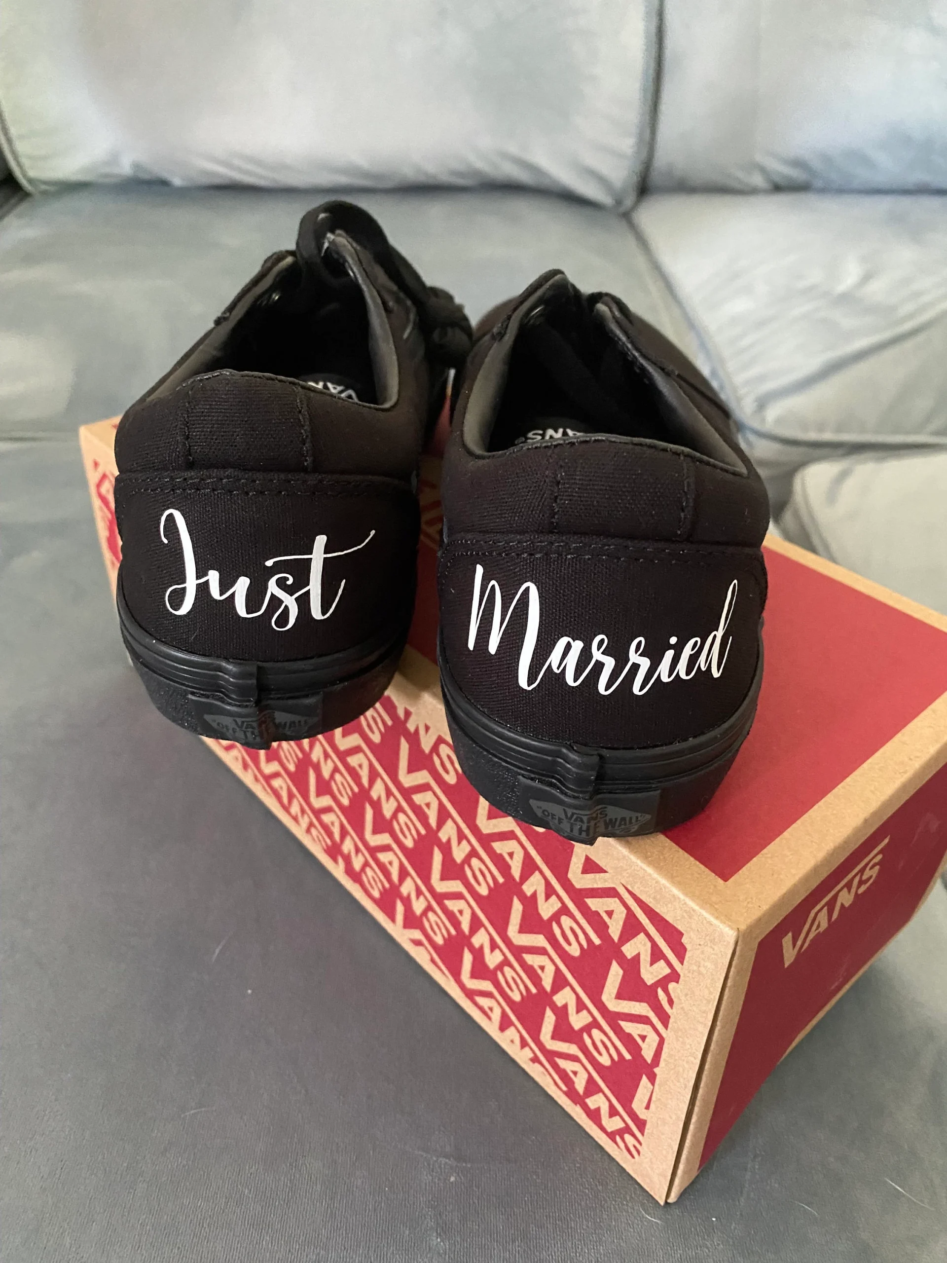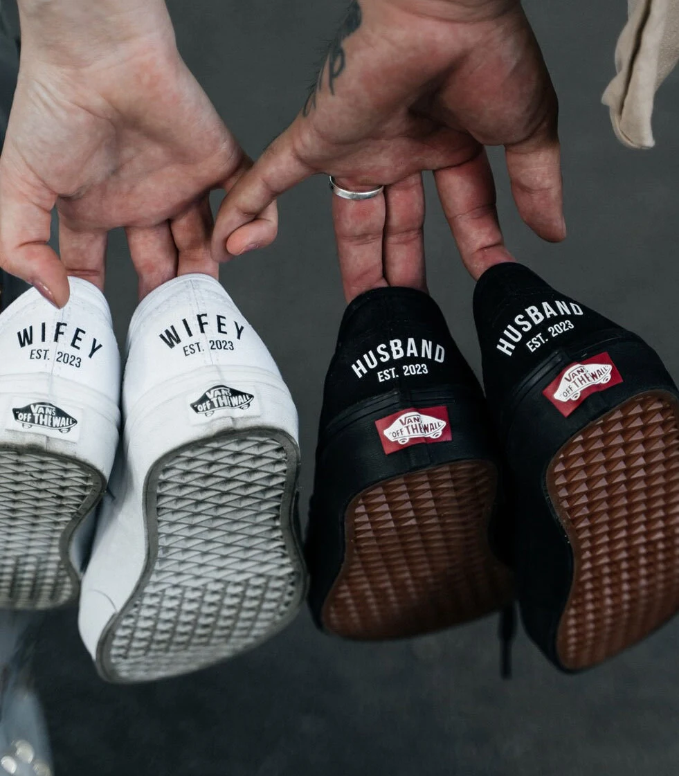 These custom black VANS are a unique addition to your wedding day, Perfect for dancing the night away. Great gift idea for yourself or your bridesmaids. Each pair is fully customizable for you!