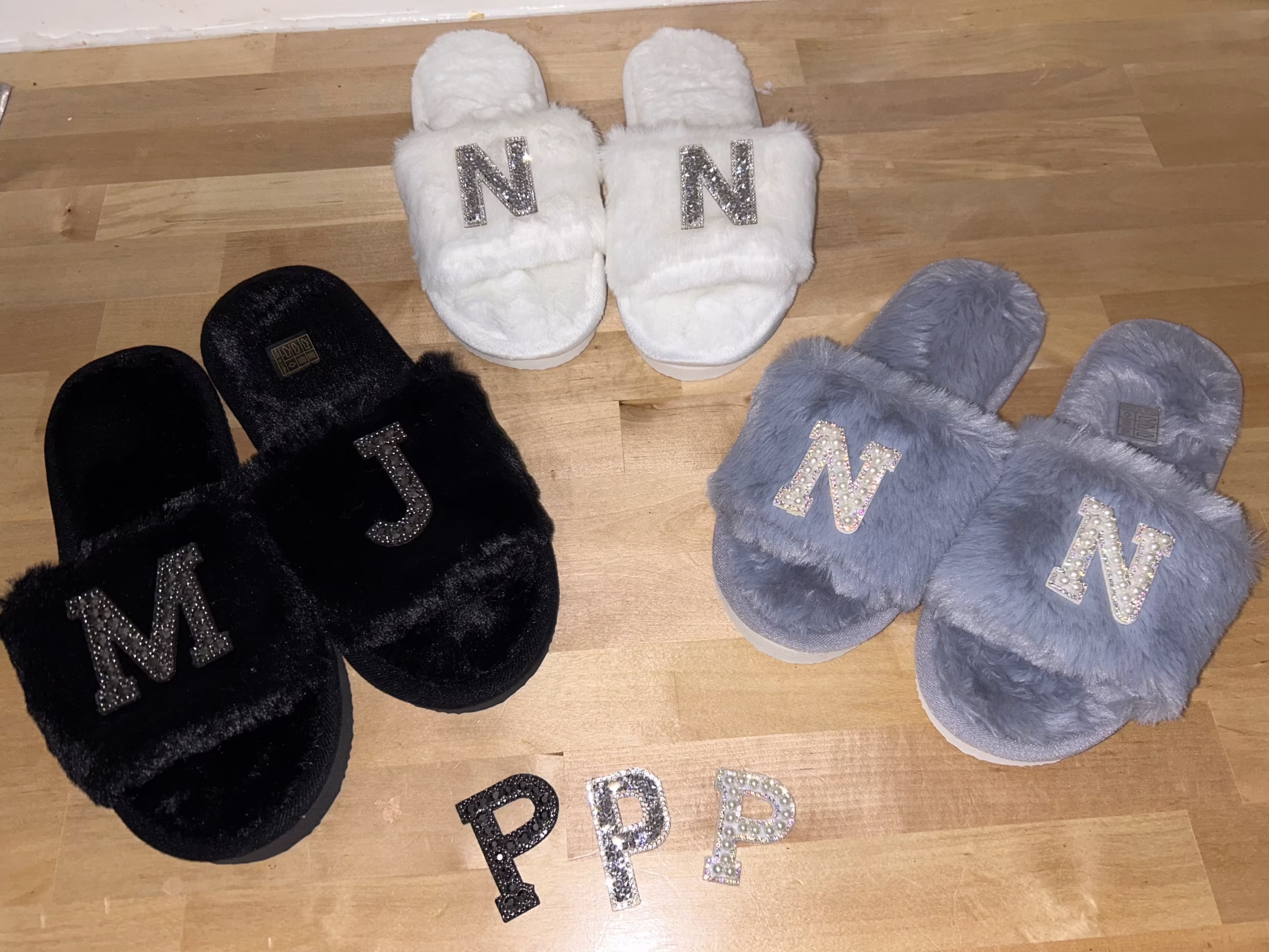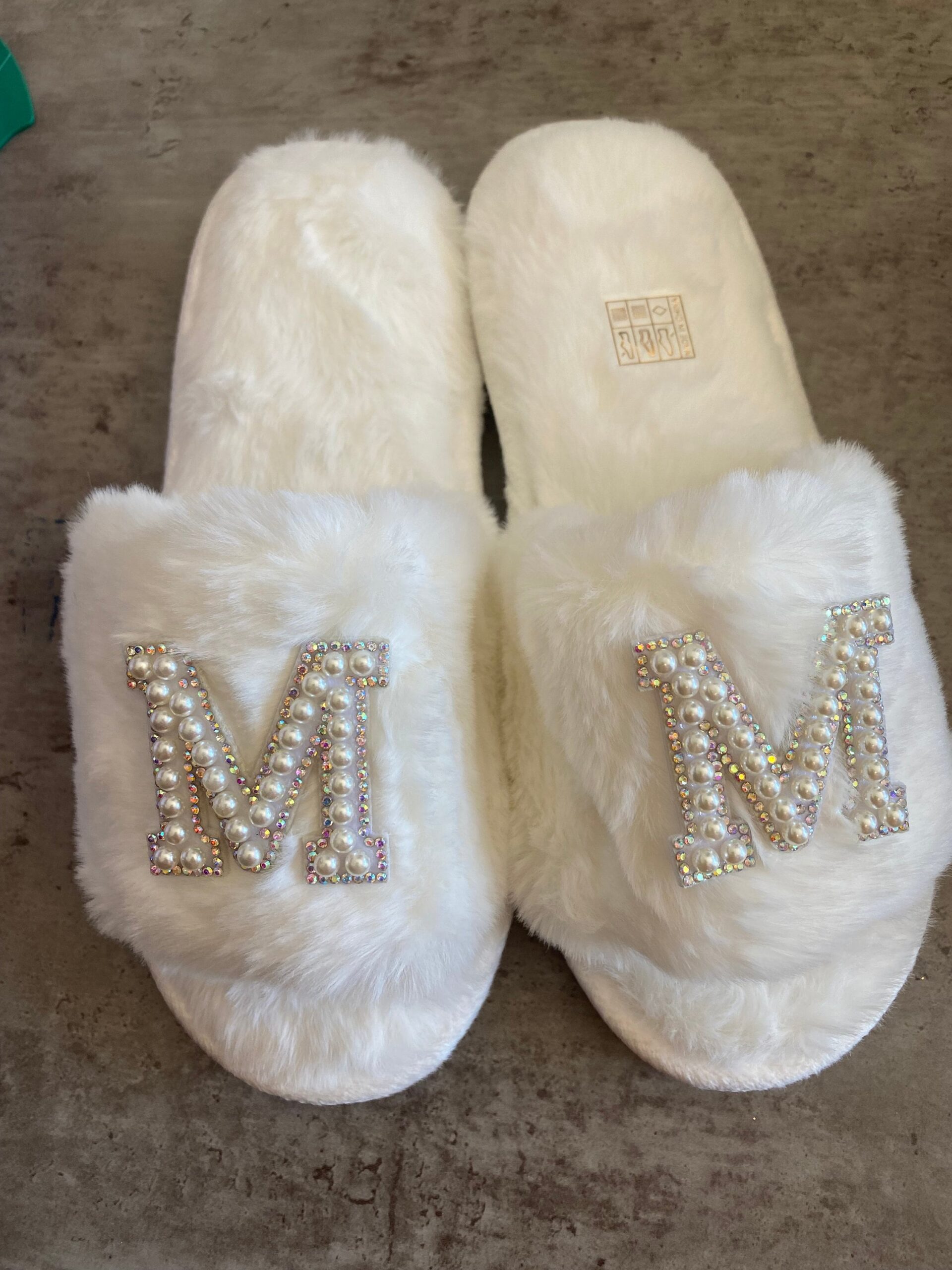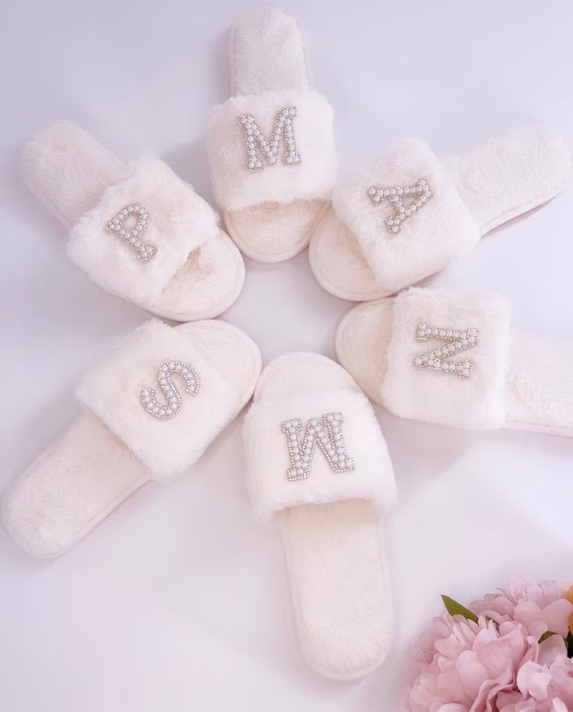 Custom monogram pearl letter slippers