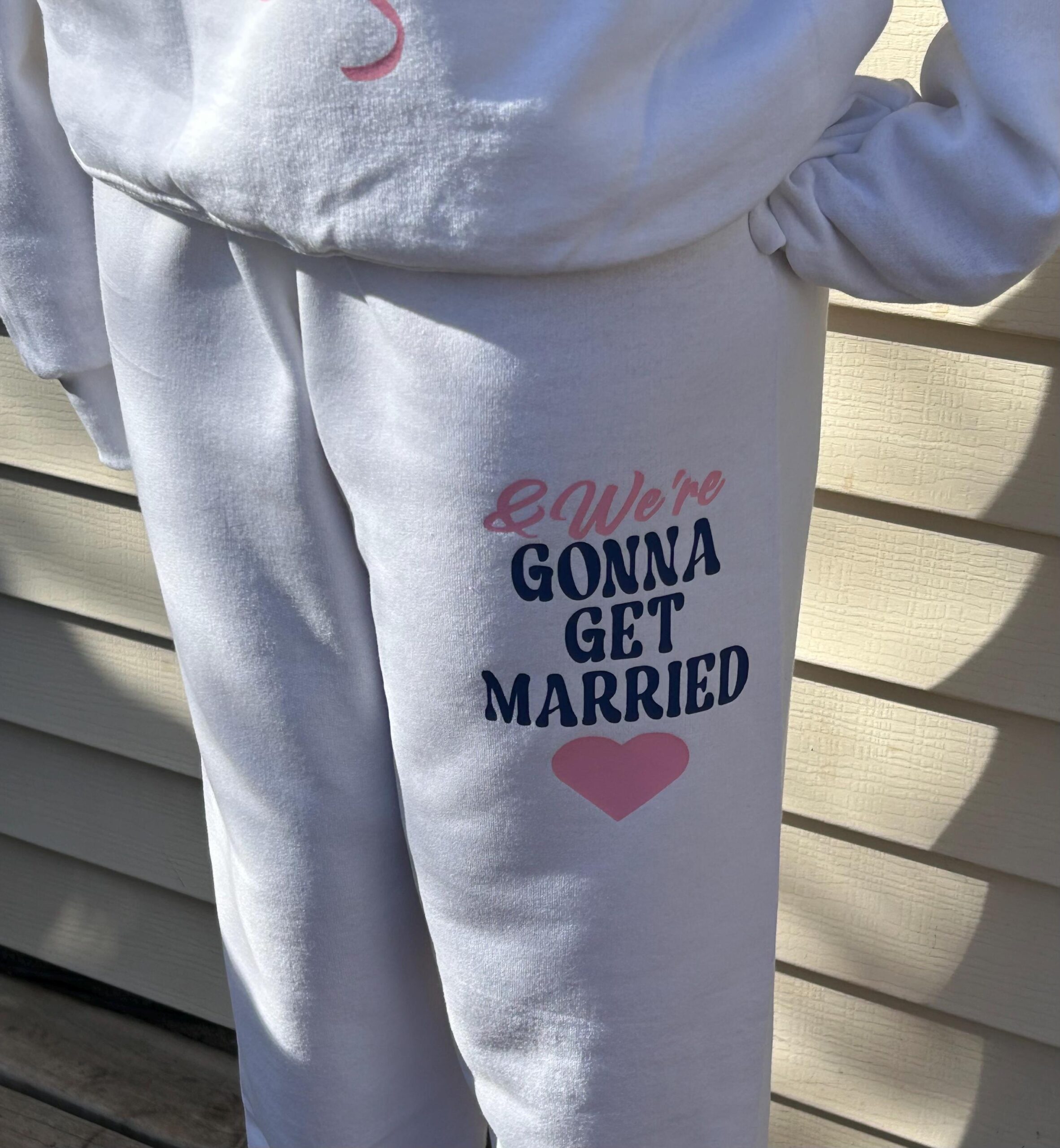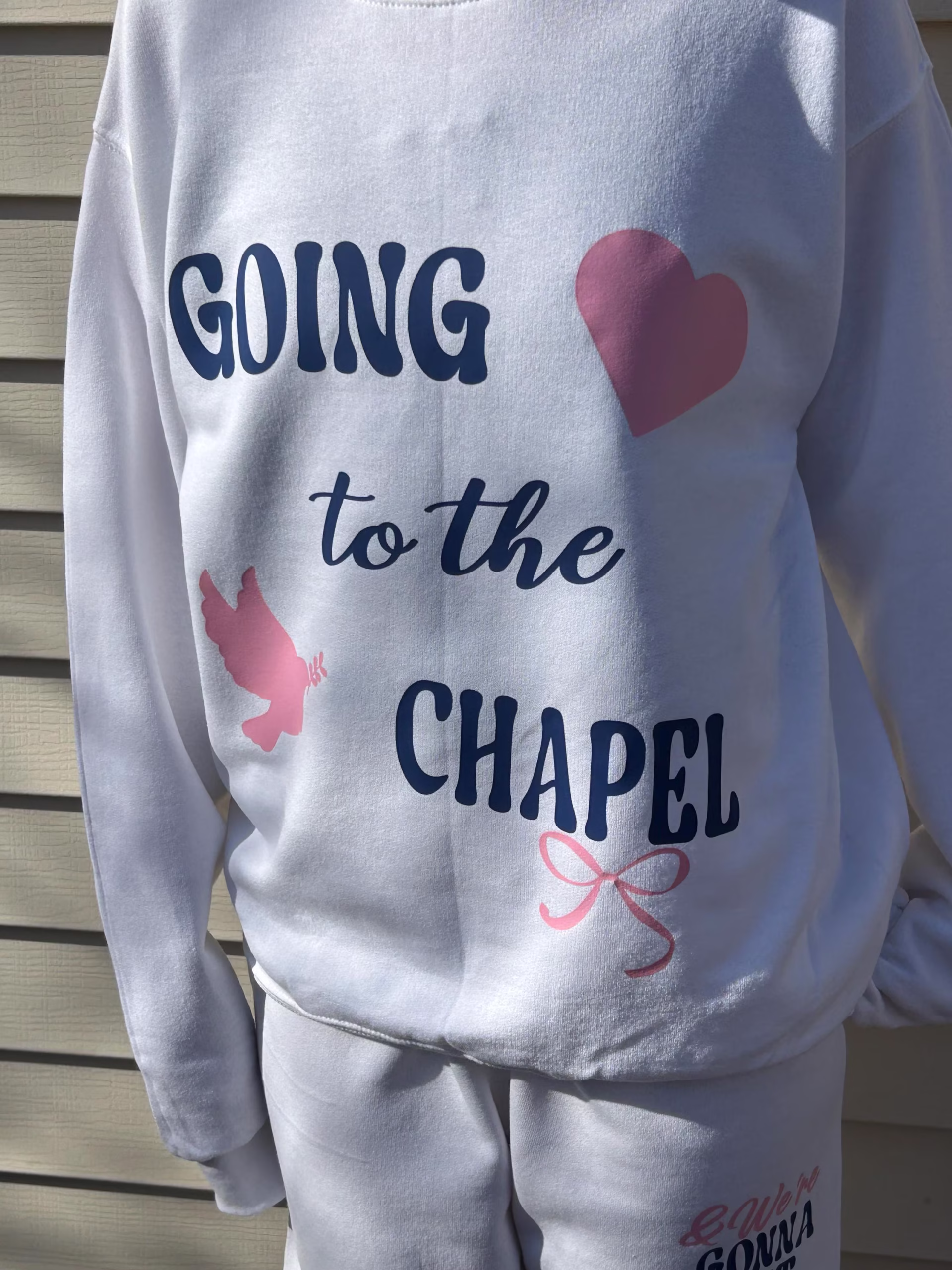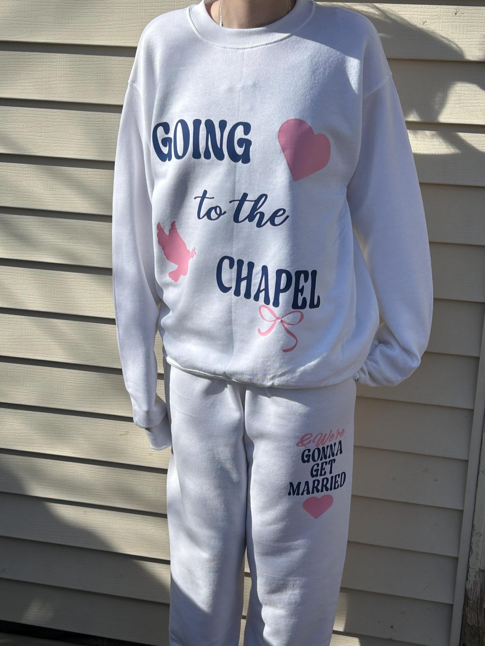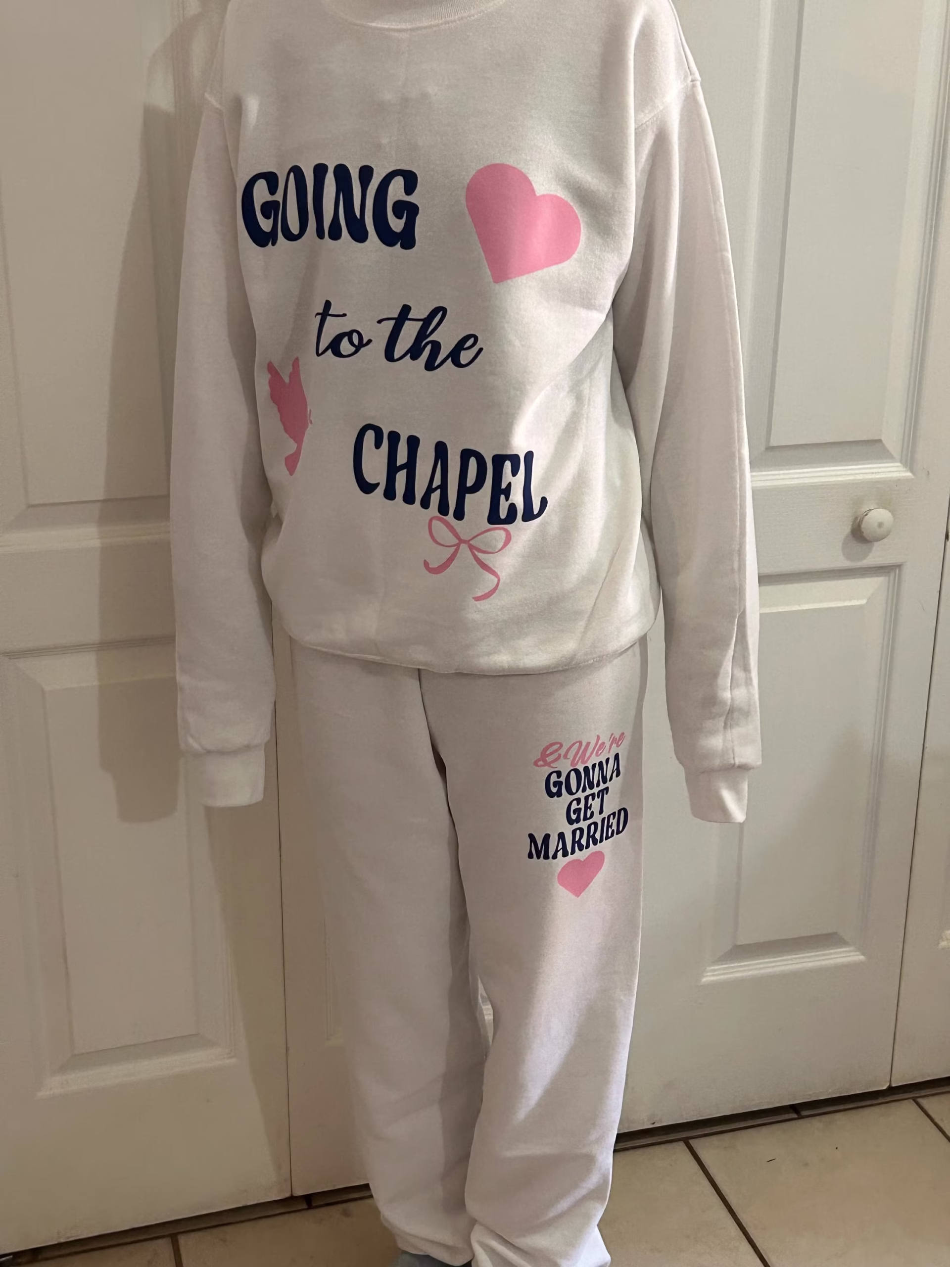 Custom bride to be wedding sweatsuit with “Going to the chapel” custom design
