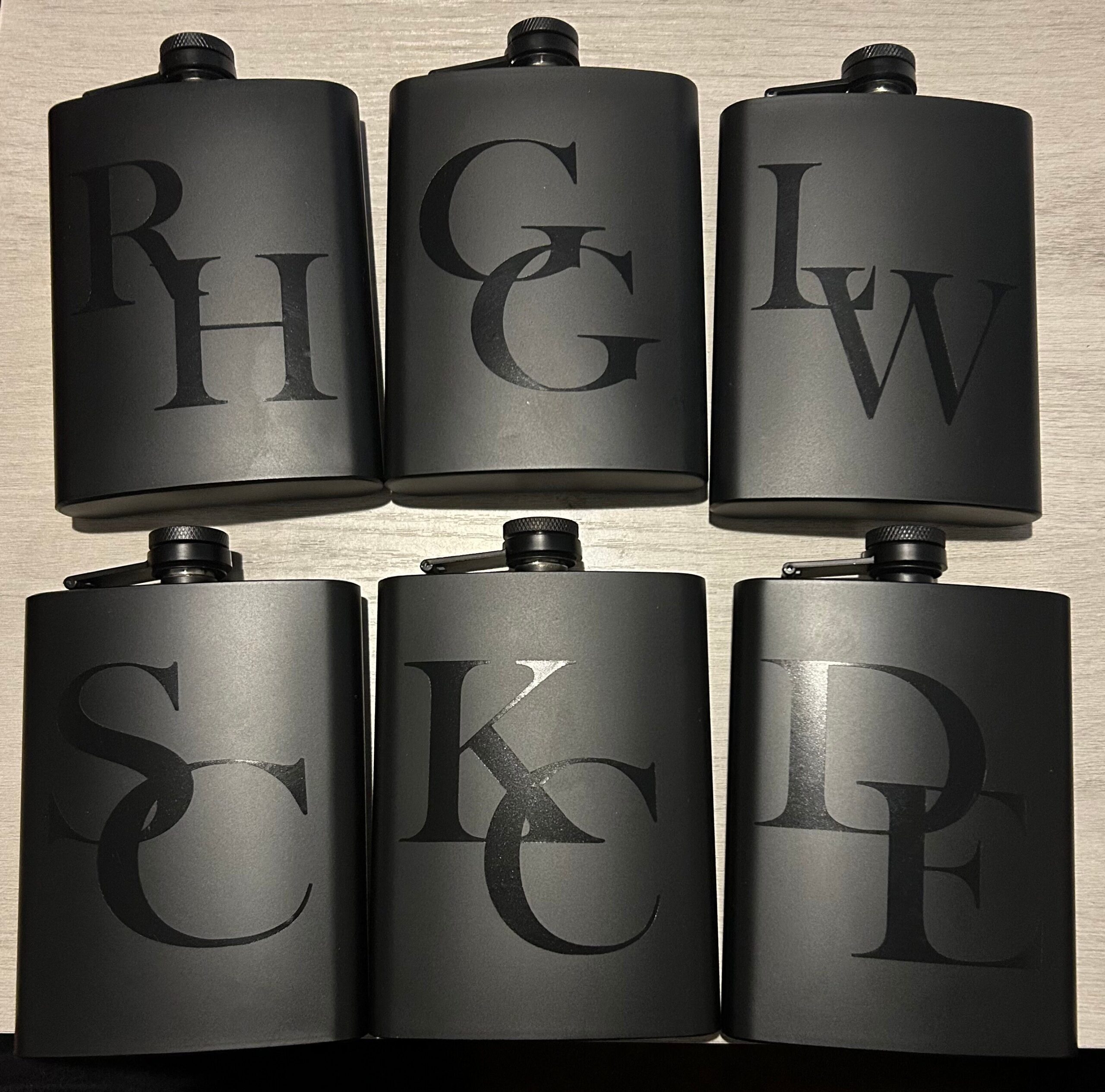 Personalized Groom/Groomsman Monogram Matte metal black hip flasks for 8oz liquid with funnel gift